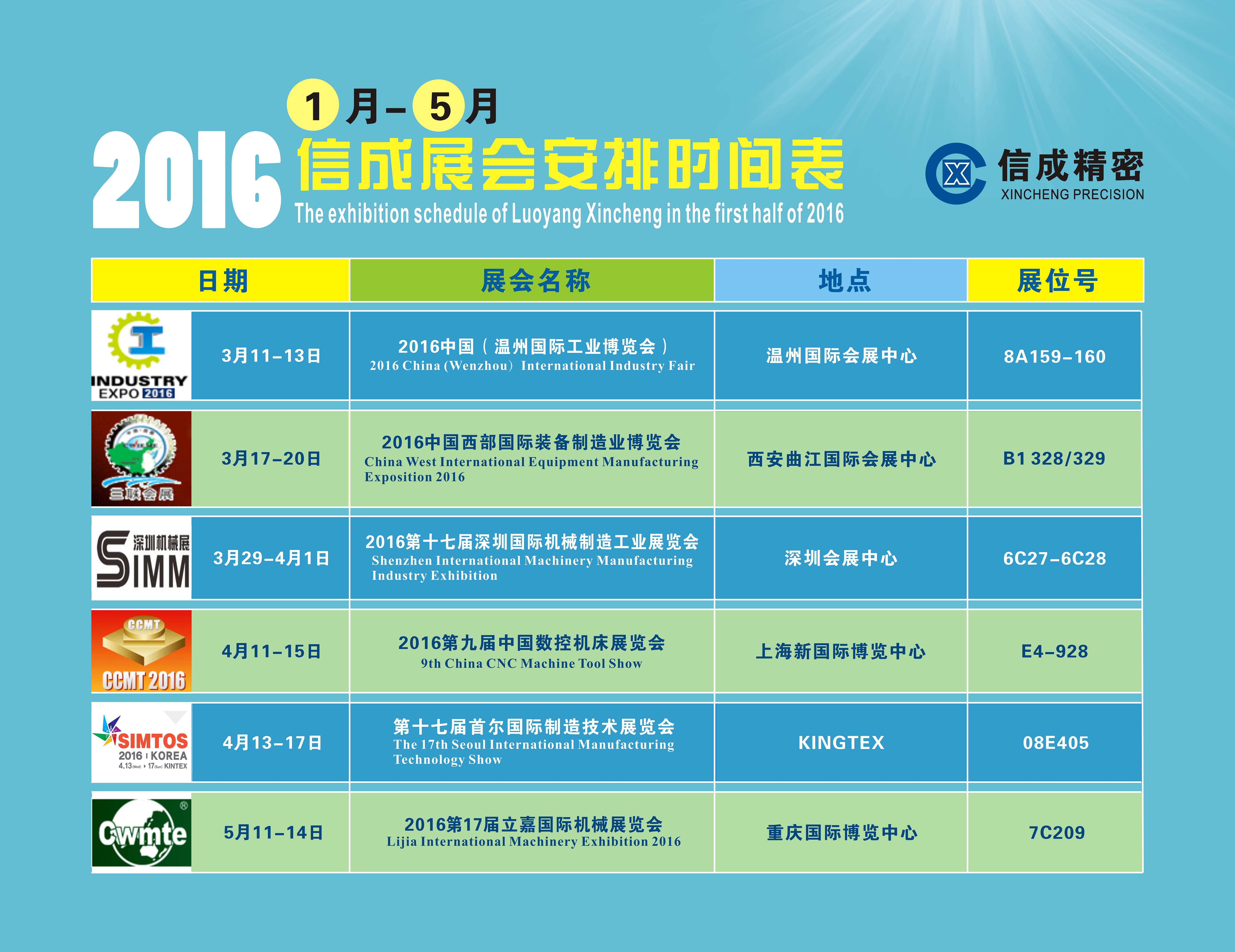 洛陽信成2016年上半年展會信息 發(fā)布時間:2016-01-06作者:來源:洛陽信成精密機械有限公司點擊:5859字體【大中小】 分享到:0 用手機看 拍下二維碼,信息隨身看 試試用微信掃一掃,在你手機上繼續(xù)觀看此頁面。 上一篇:第20屆青島國際機床展覽會 下一篇:洛陽信成2016年第三季度展會信息
