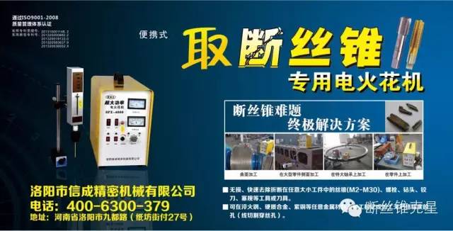 HHJ系列、YT系列“取斷絲錐電火花機(jī)”,體積小重量輕,可方便去除折斷在任意大小工件中的斷絲錐、斷鉆頭等,尤其適用于在電火花機(jī)床上加工的大型 工件。超大功率電火花機(jī)SFX-4000,在技術(shù)上實(shí)現(xiàn)了重大突破,加工范圍及效率大幅提高,可以取M2-M50的斷絲錐,斷螺絲,斷鉆頭,斷鉸刀等!