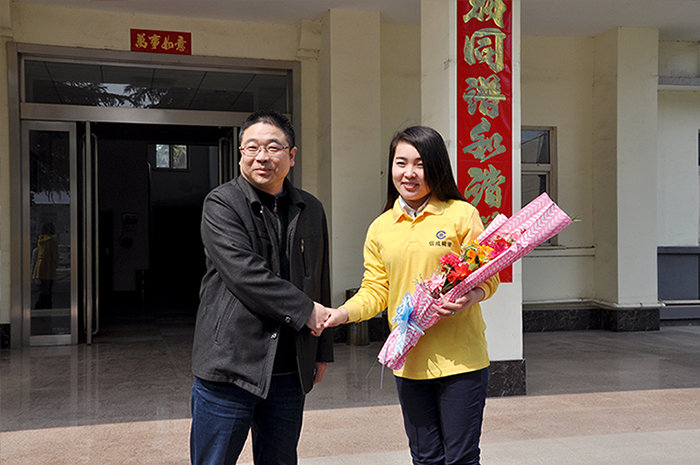 3月21日下午,總經(jīng)理丁向陽帶領銷售財務部及辦公室全體在崗人員,帶著鮮花在辦公樓前熱情迎候載譽歸來的信成戰(zhàn)士。在隊長黃利利的帶領下,劉向前、侯小紅、牛海波笑容滿面地走下公司的奔馳汽車,向迎接他們的公司領導和同事熱情握手致意。