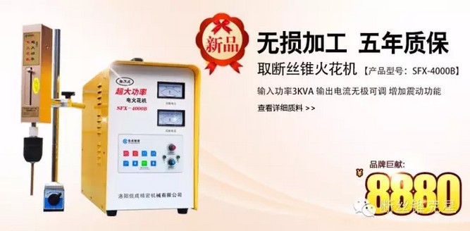 展會(huì)現(xiàn)場(chǎng)定購(gòu)本公司取斷絲錐電火花機(jī),即可享受展會(huì)價(jià),好機(jī)會(huì)不容錯(cuò)過(guò)。