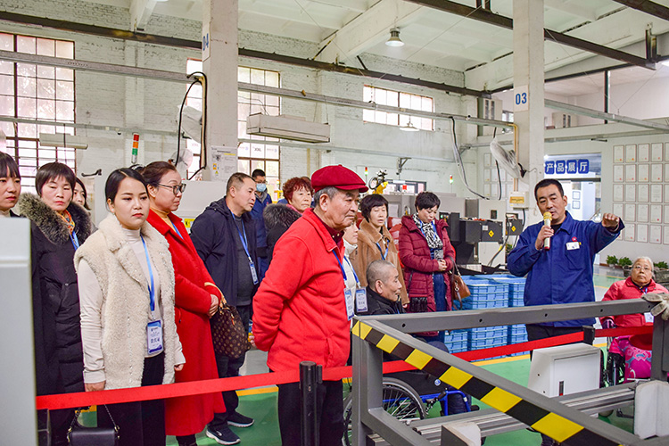 三位公司高管帶領(lǐng)員工家屬們?cè)跈C(jī)加車間、裝配車間、辦公樓參觀。