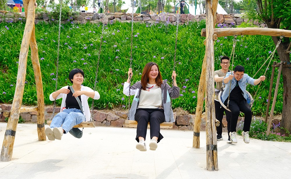自由活動(dòng)時(shí)間里,三五成群游玩小索道,滑梯,尤其是漫山遍野的槐花,空氣中彌漫著陣陣清香,盡情的欣賞大自然之美。