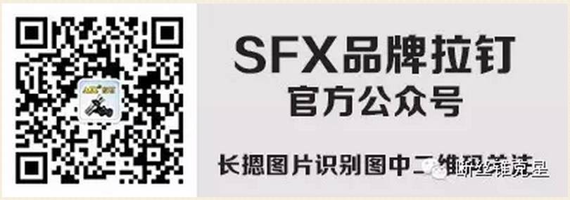 掃碼關(guān)注SFX品牌拉釘訂閱號(hào)、斷絲錐克星服務(wù)號(hào),并把此信息轉(zhuǎn)發(fā)到朋友圈,可到E4-B11展位***取價(jià)值35元SFX品牌拉釘壹支。