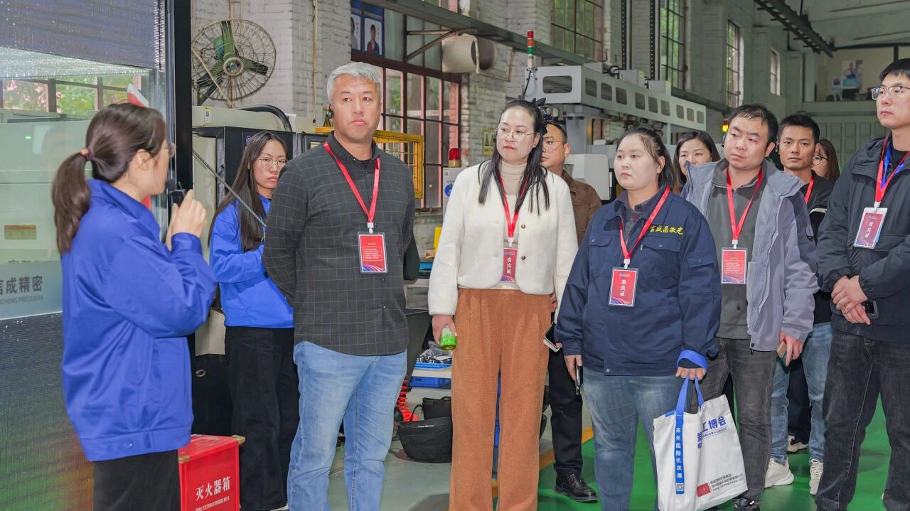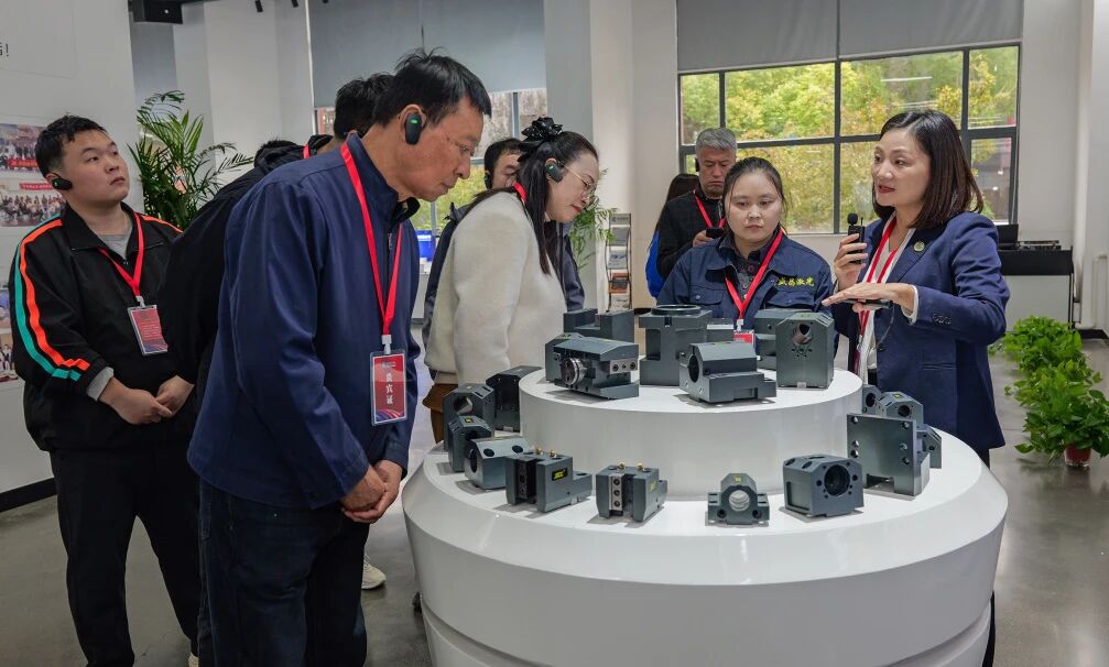 在丁董與袁總帶領(lǐng)下,嘉賓們分為紅、藍(lán)兩隊(duì),有序參觀了公司銑加工車間、車床刀座柔性生產(chǎn)線、裝配車間機(jī)電產(chǎn)品線、檢測(cè)檢驗(yàn)中心及車加工車間。