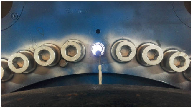 這種螺栓曾經(jīng)在云南昆明、河南宜陽(yáng)取風(fēng)電斷螺栓時(shí)遇到過(guò),不過(guò),這次的運(yùn)氣可沒(méi)以前的好。因?yàn)檫@臺(tái)風(fēng)機(jī)軸承蓋太大,位置不夠,攜帶的工具施展的空間較小,難度特別大;在施工過(guò)程中,自制刀桿又被設(shè)備卡住,給工作帶來(lái)巨大的不確定性。面對(duì)困難,劉向前平心靜氣,每一步的施工變得更加認(rèn)真,不斷的研究施工方案,并實(shí)時(shí)將現(xiàn)場(chǎng)信息傳回洛陽(yáng)。