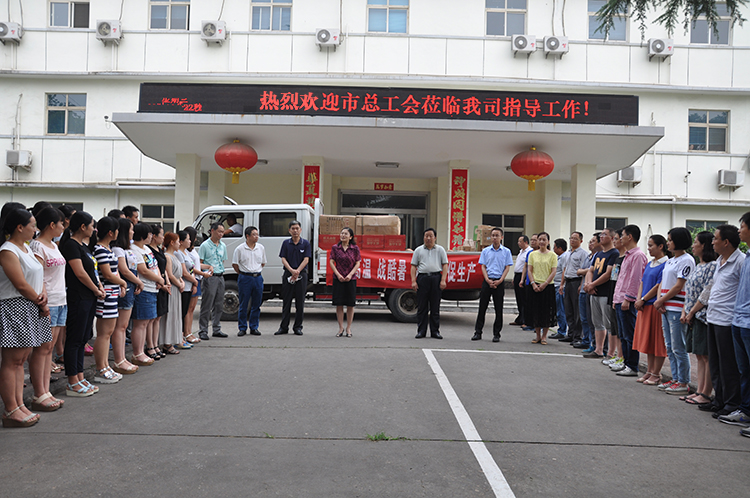 7月13日上午,洛陽市總工會領(lǐng)導(dǎo)王越華、洛陽市老城區(qū)工會主任杜學(xué)禮、西關(guān)辦事處黨工委書記王逢偉、西關(guān)辦事處黨工委副書記紀委書記李純帶領(lǐng)工會干部職工,帶著價值數(shù)千元的解暑水果、飲料、藿香正氣水等物品,來到洛陽信成精密機械有限公司開展夏季“送清涼”活動。