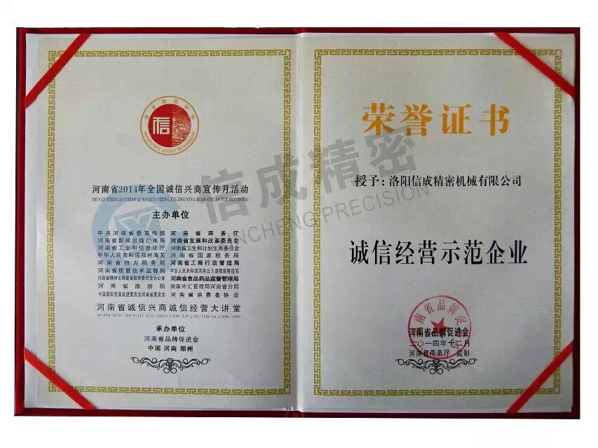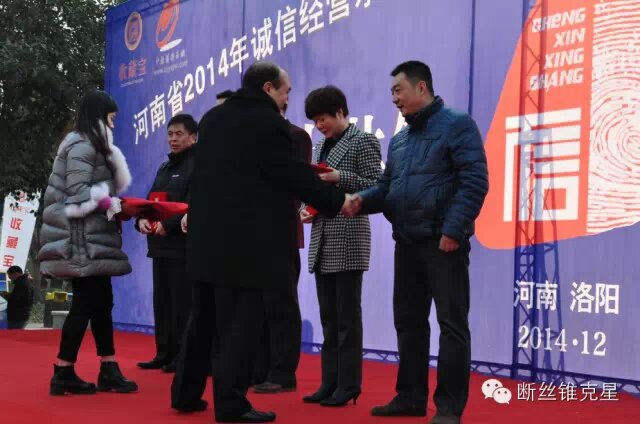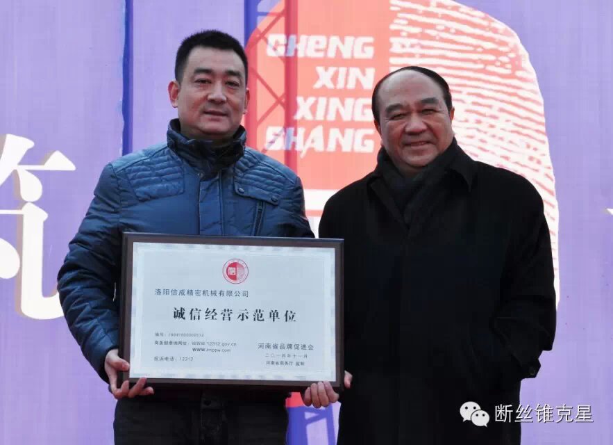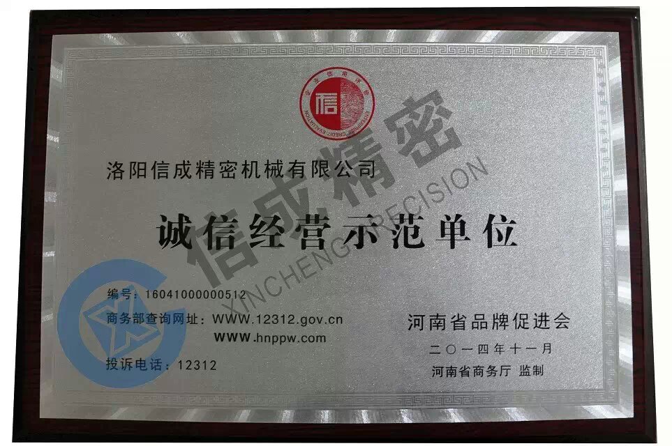 洛陽(yáng)信成獲【誠(chéng)信經(jīng)營(yíng)示范單位】稱號(hào)