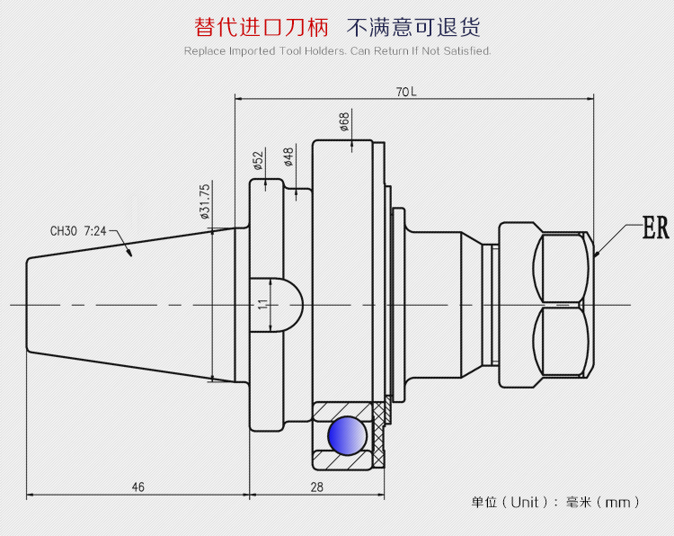 - 簡介:CH30-ER32-75巨浪刀柄高速加工中心德國巨浪Chiron機床帶軸承刀柄替代進口